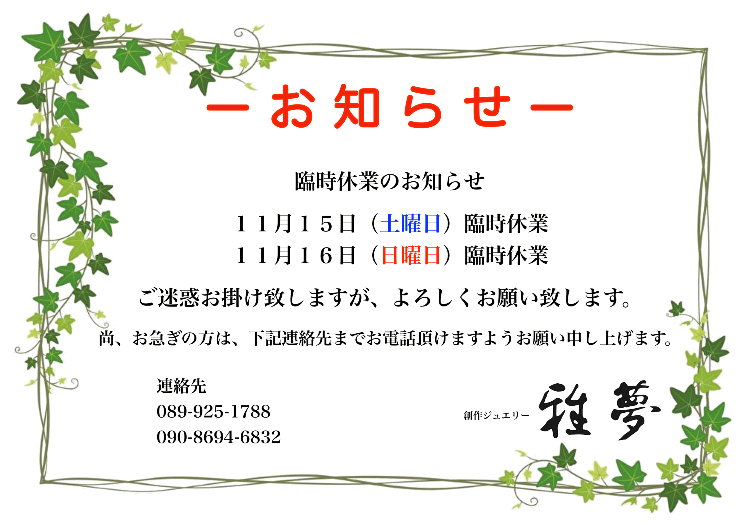 創作ジュエリー 雅夢